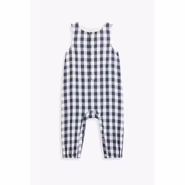 Country Road Organically Grown Cotton Button Romper - Navy Gingham