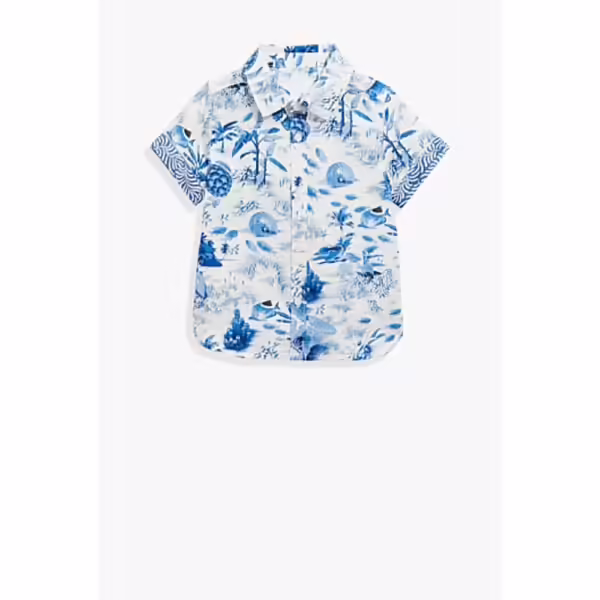 Country Road Organically Grown Cotton Beach Print Short Sleeve Shirt Marine Blue