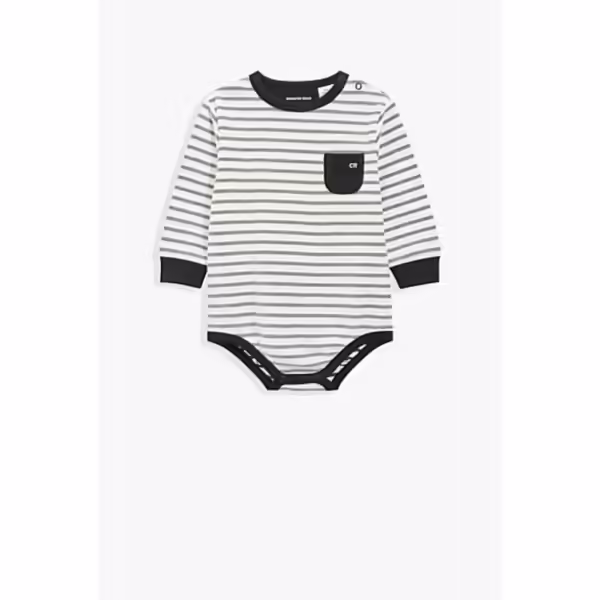 Country Road Australian Cotton Oversized Stripe Long Sleeve Bodysuit - Black