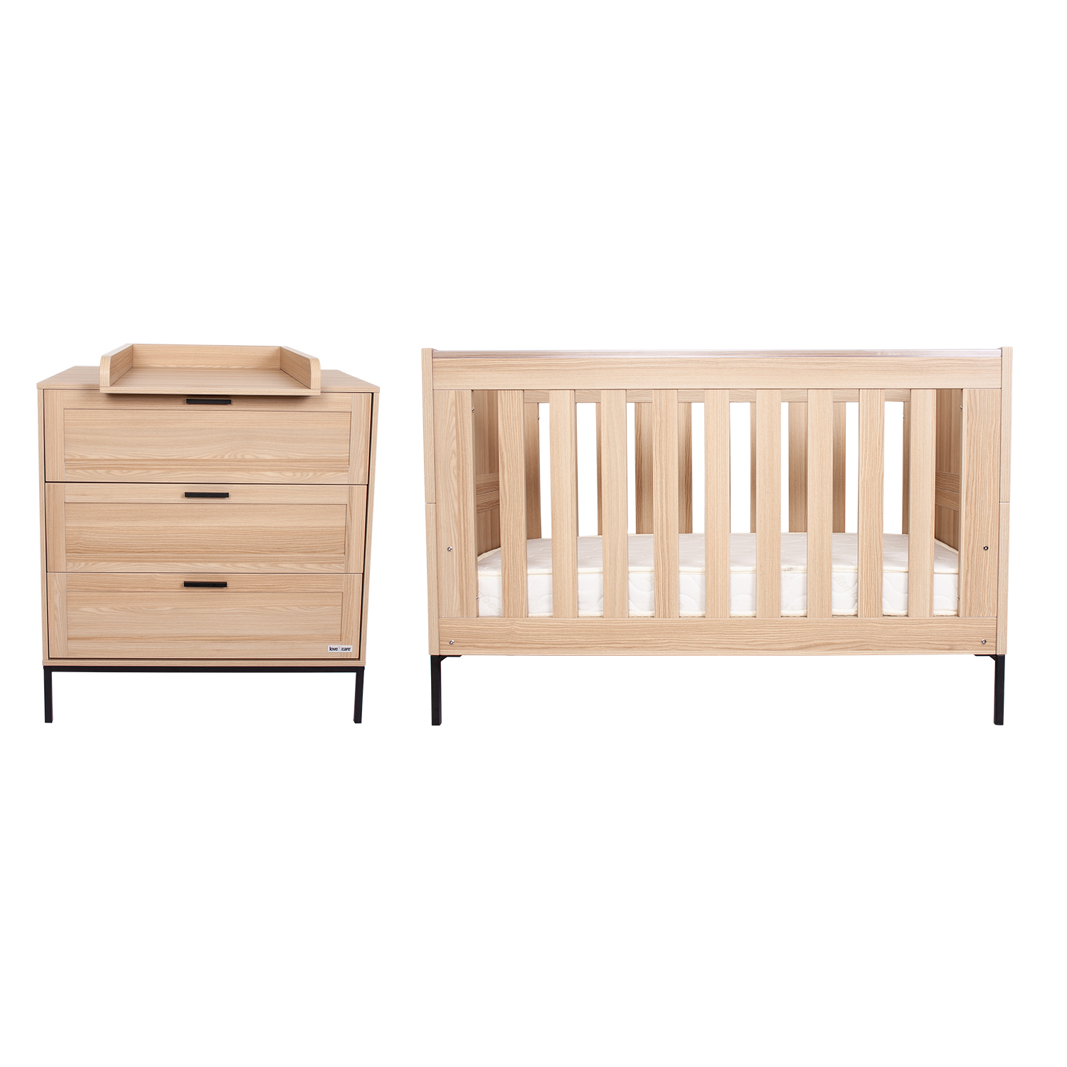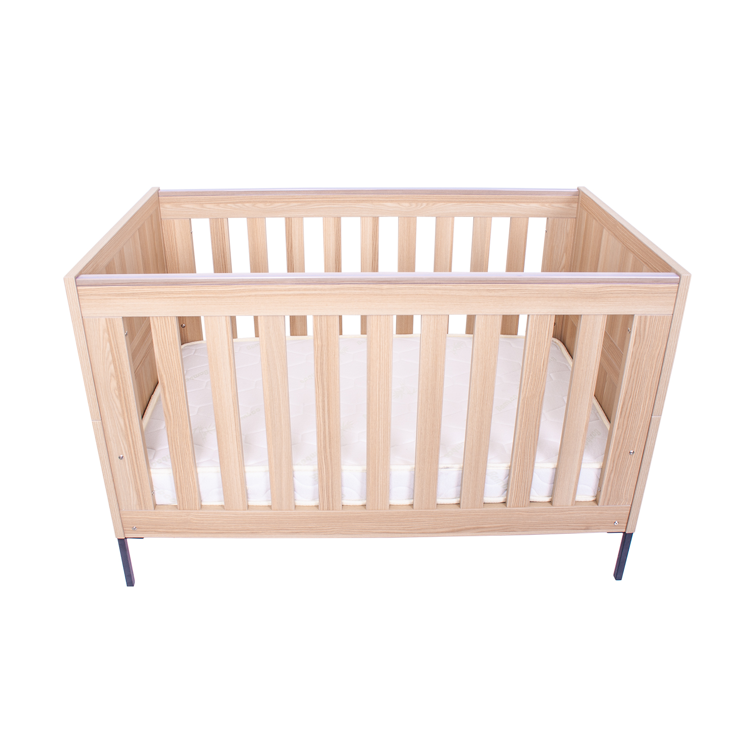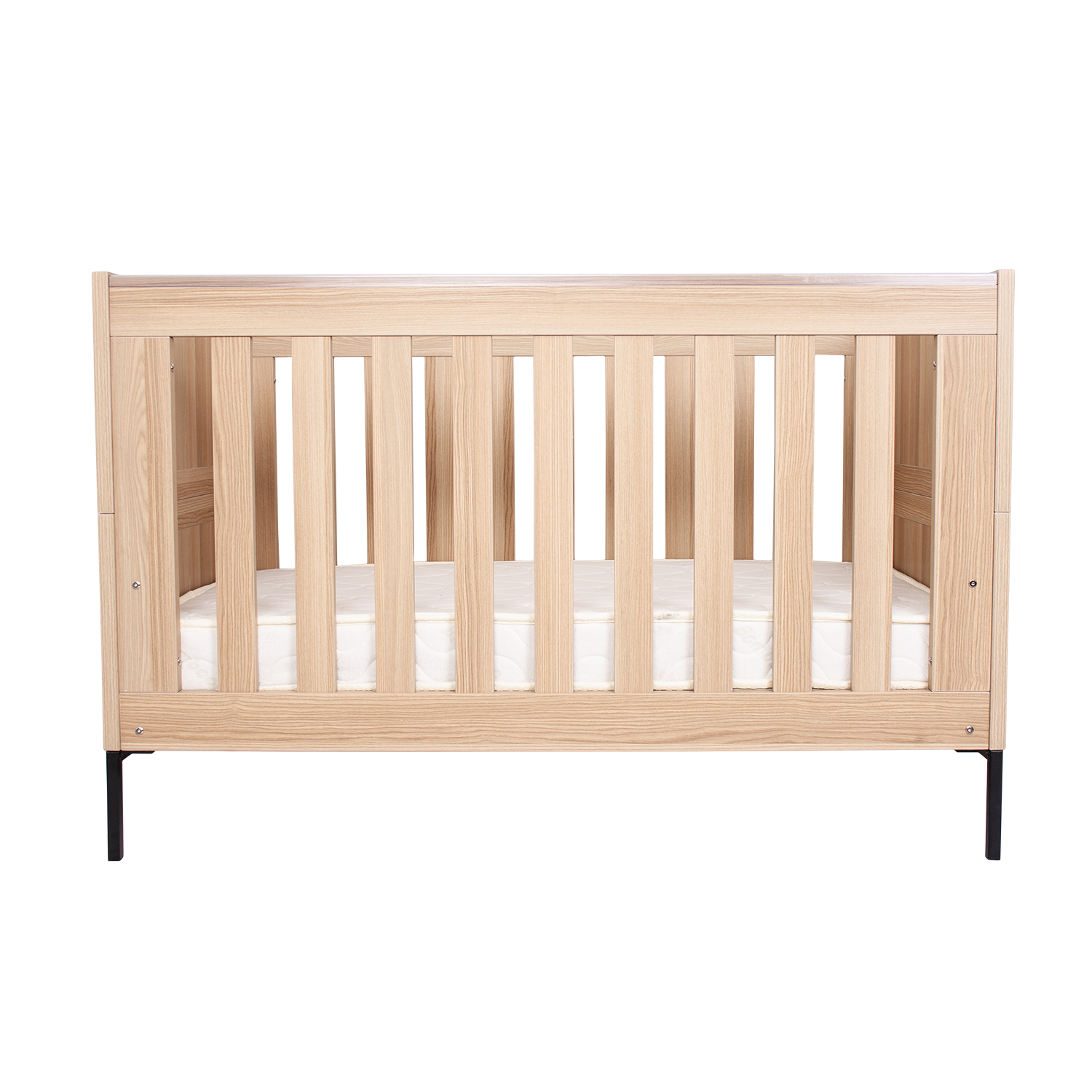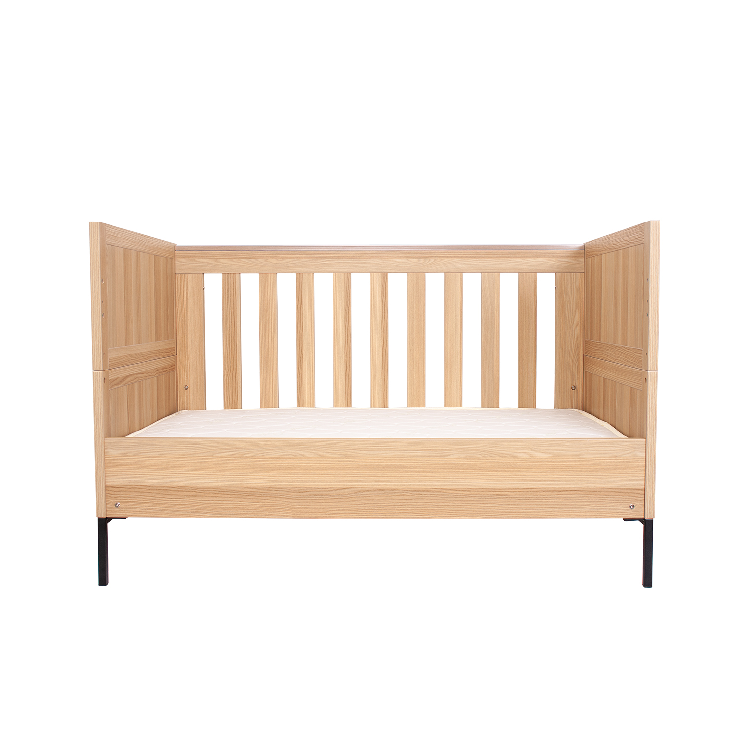 With its smooth lines, woodgrain finish, and modern metal legs, the Jakarta Cot blends functionality with a sense of calm. Inspired by the natural beauty of Indonesia, its organic elements bring warmth and versatility, making it easy to complement any nursery style. Thoughtfully designed with adjustable mattress heights and protective teething rails, it ensures both comfort and safety for your little one. As your child grows, the Jakarta Cot easily transforms into a toddler bed or day sofa, creating a cosy space for sleep or relaxation well beyond the cot years.