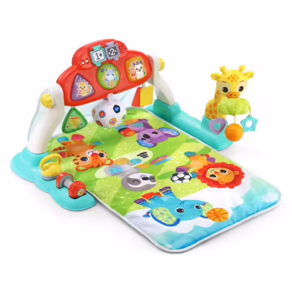 With hundreds of thousands of units sold, this musical activity gym engages baby with 25+ minutes of continuous lights and music and transforms 4 ways to grow with baby from ages 0 to 36 months. A must have for any baby registry with 4 play modes: lay and play, tummy time, seated play, and on the go. Baby will love to explore the gym’s 2 toy bars and the colorful kick piano, which features 3 modes of learning and play. As baby grows, flip the piano up to use for seated play, or detach from the gym to take musical discovery on the go! A Magic Touch surface helps the piano respond to every kick, tap, and press so baby can make music easily! Parents love that this unique gym supports baby’s visual development and fine and gross motor skills. The piano features 70+ engaging melodies and sounds and teaches colors, shapes, and numbers in 4 languages (English, Spanish, French, & German). 7 detachable toys encourage reaching and sensory engagement, and a prop pillow gives baby extra support to help baby strengthen neck muscles during tummy time.